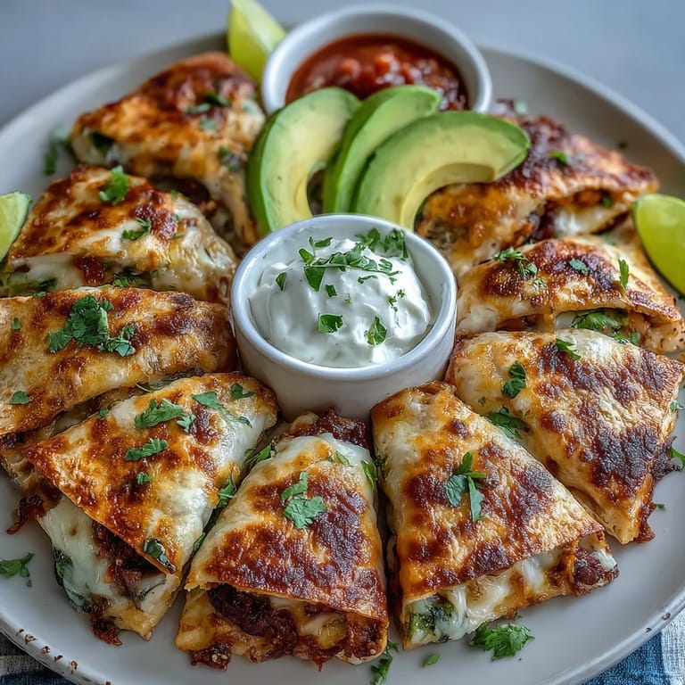 Save My neighbor brought this blooming quesadilla ring to a potluck last summer, and I watched people gather around it like it was the main event instead of just an appetizer. The way those golden triangles spiraled outward, with melted cheese peeking through the edges, made everyone reach for one before anything else hit the table. I asked for the recipe that night, and what struck me most was how simple the technique actually is, yet somehow it feels like you've done something impressive just by arranging them in a ring.