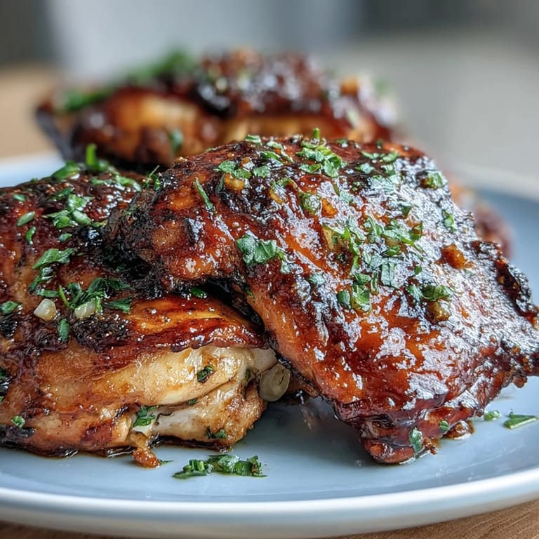 The real brilliance of this recipe lives in how the honey and soy sauce react to oven heat, transforming from a thin liquid into something thick, glossy, and deeply caramelized. I've learned that the magic happens in the last ten minutes of cooking when everything really starts to concentrate and turn that amber color, and if you baste halfway through like I mentioned, you're essentially building layers of flavor. The vinegar keeps it from being cloyingly sweet, and the garlic becomes almost creamy as it cooks down into the glaze.