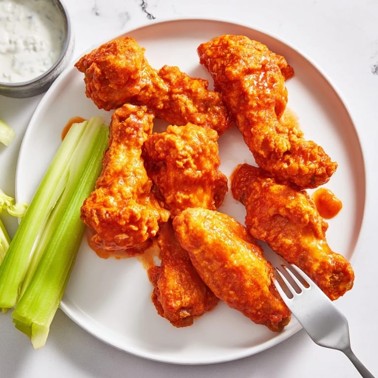 Save There's something undeniably satisfying about sinking your teeth into a perfectly crispy Buffalo wing, its tangy, spicy sauce coating your fingers as you reach for another. Born in Buffalo, New York, in the 1960s, these iconic wings have become a beloved staple at gatherings, game days, and casual dinners alike. The magic lies in the contrast—golden, shatteringly crisp skin giving way to juicy, tender meat, all enrobed in a buttery, vinegar-spiked hot sauce that delivers just the right amount of heat. Paired with cool, creamy blue cheese dip and refreshing celery sticks, Buffalo wings offer a symphony of flavors and textures that keeps you coming back for more.